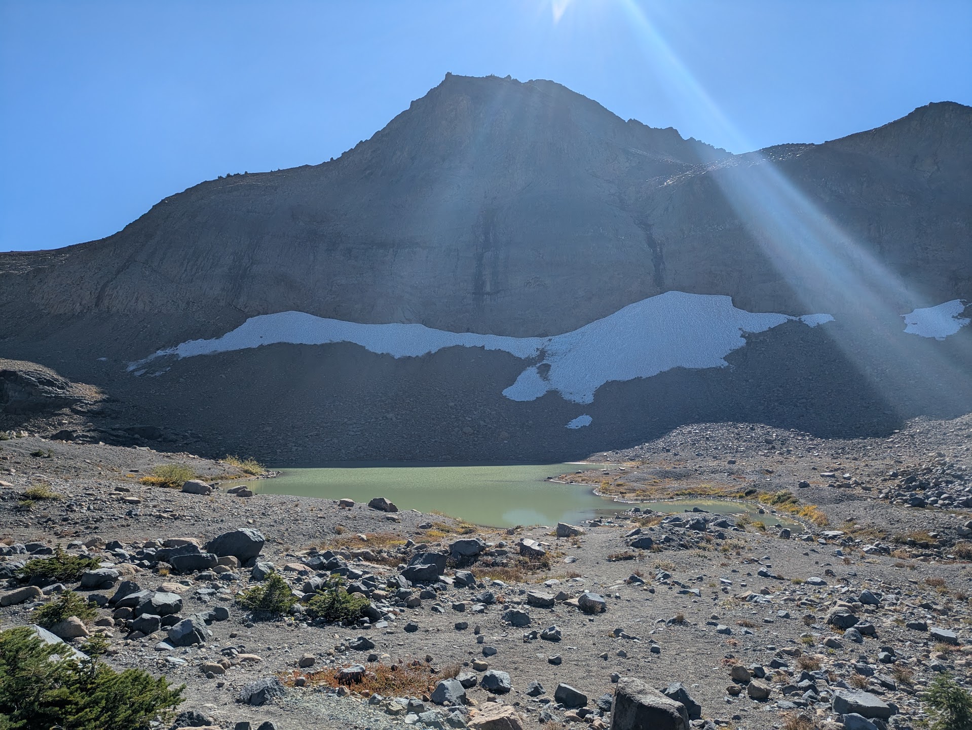 The rest of the evening was mostly business. Eating dinner down at the bar, washing up, and filtering water. Two other backpackers rolled in late filling up the remaining two camp sites. Both looked exhausted. I noted that I would have been okay without a permit, but just barely. As the sun went down and light receded from the meadow, I spotted a black bear not far in the distance behind the shelter who appeared to be foraging in a small permitter. Even though I knew I wouldn’t need it, I was happy I brought bear mace and decided to keep it right outside my tent. For dinner, I had Backpacker’s Pantry Green Curry, packing an impressive 2000mg of sodium. I was reminded why I usually avoid such high sodium meals at night, because it makes me pee a frightening number of times. I think I counted 4 times before bed and 3 times overnight. Not exactly what you want to be feeling or doing once you are cozy in your tiny tent.