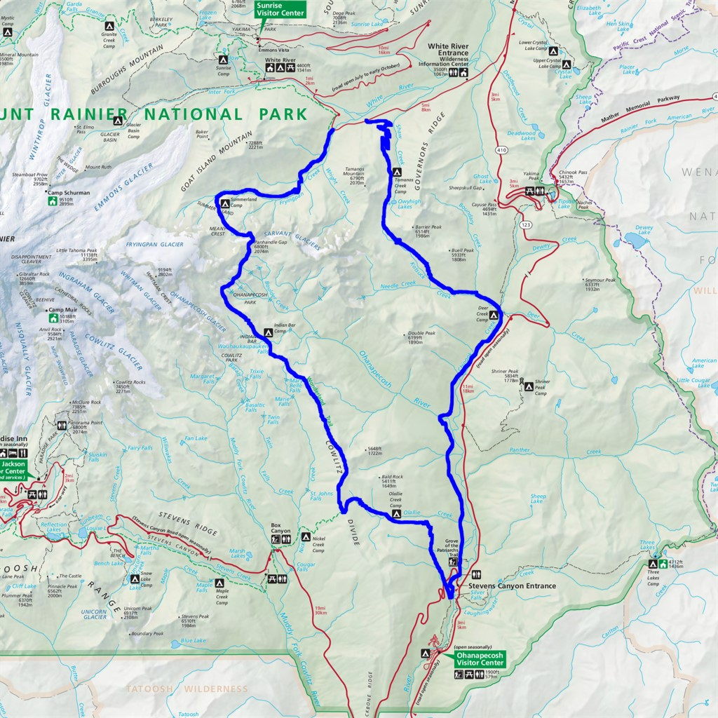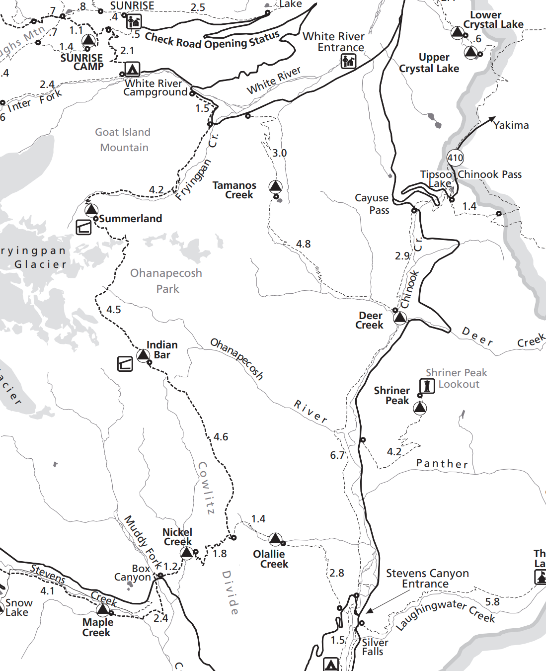 This day would unfold in three distinct parts: first, the ascent south out of Indian Bar; second, the descent to the junction where I’d leave the Wonderland Trail for the Olallie Creek Trail; and finally, the eight-mile trek north along the East Side Trail to Deer Creek.